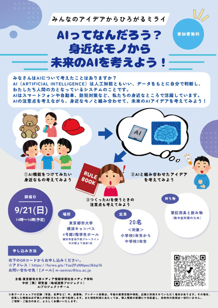 9月21日東京都市大でAIに関するこども向け講座開催